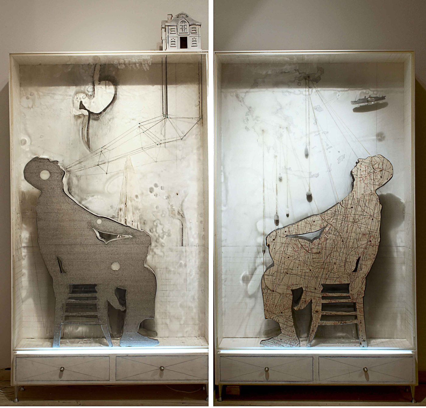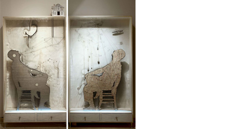 The work of Angelos Antonopoulos “builds” on the use of pre-existing objects. This is not always obvious because the artist intervenes in extremely detailed and deconstructive ways on the primary object. The dominant patterns of his work seem to be the lost childhood, the iconography of Faith and the artistic process as enigmatic construction. Between the objects that he finds (object trouves) very frequent are plastic dolls, that sometimes processes discretely and sometimes destroys them. Other times he uses oddly “ready made” elements like a precise copy of the Charioteer of Delphi (according to scale) and books-objects, encyclopedias, guides for anatomy, the New Testament, which he dissects and engages with three dimensional objects. Puzzling World...