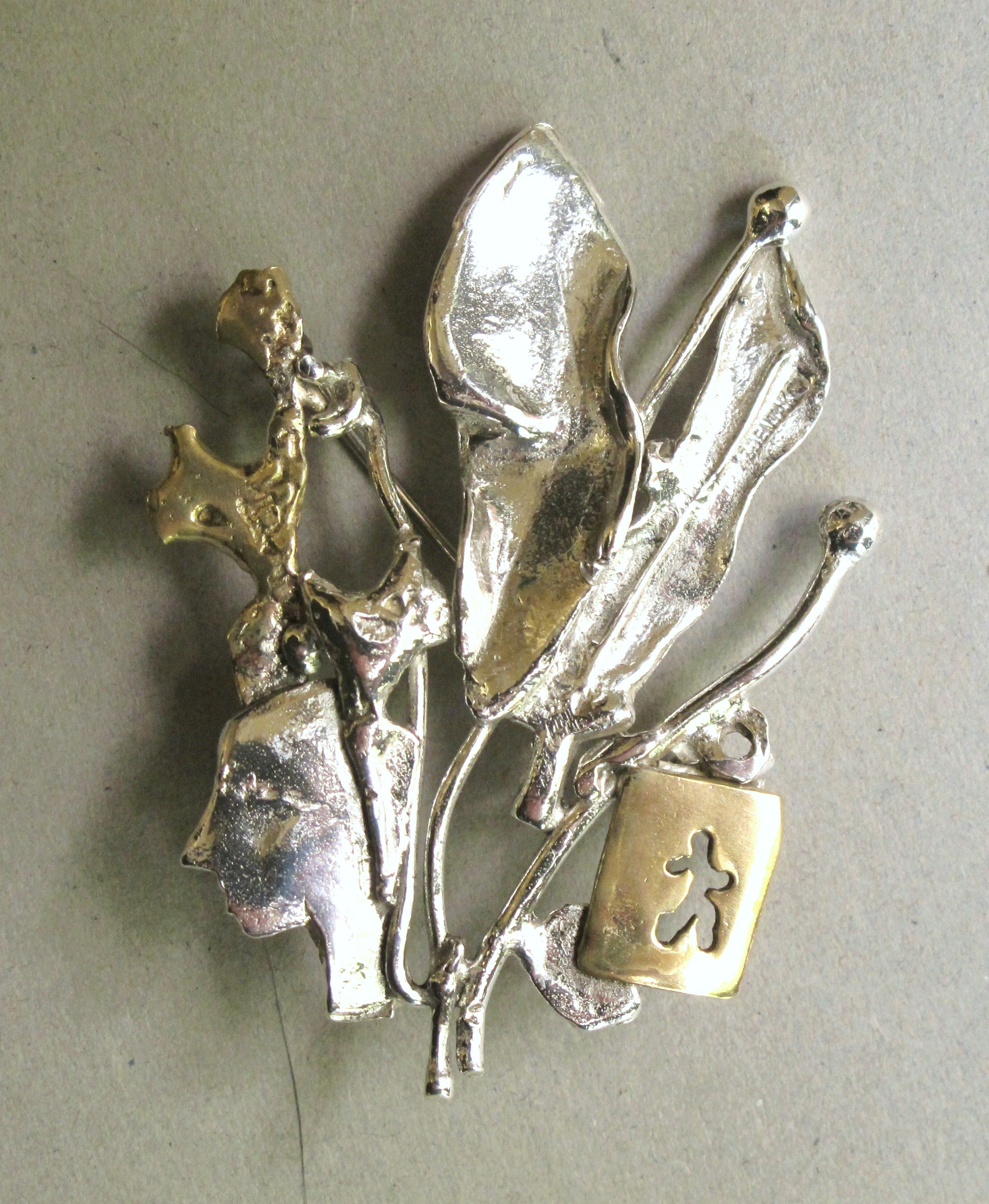 Composition in Silver Brooch with Floral Decoration and Gold Plated Figurecreated by Magda Levendakou