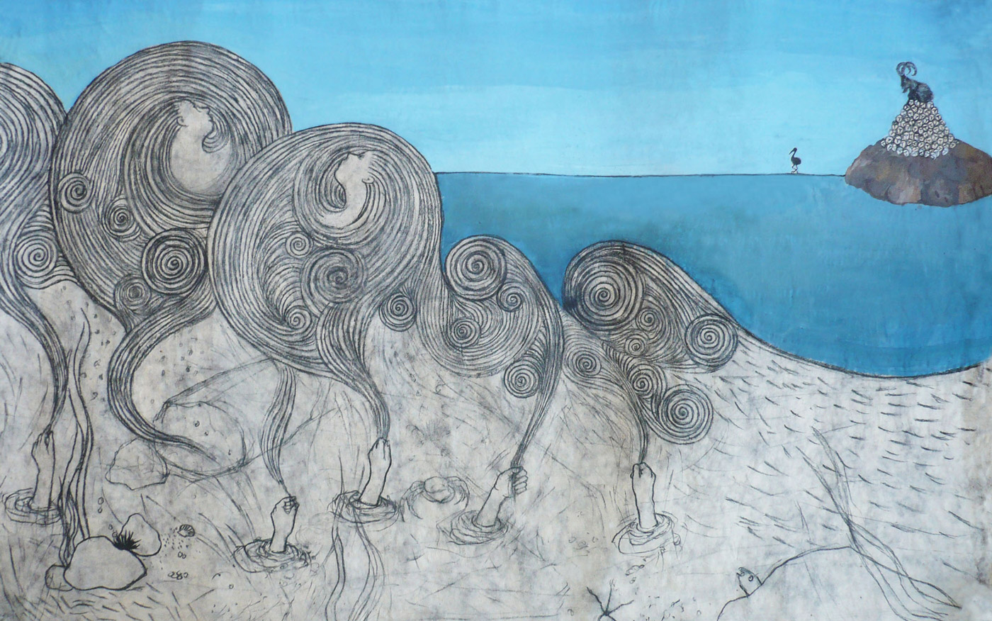 The work ‘Hands’ is part of the series ‘Olous’. Lida was inspired by the actual phenomenon of a sunken city, like the ancient Olous, and created this composition of real and surreal elements of such a situation.