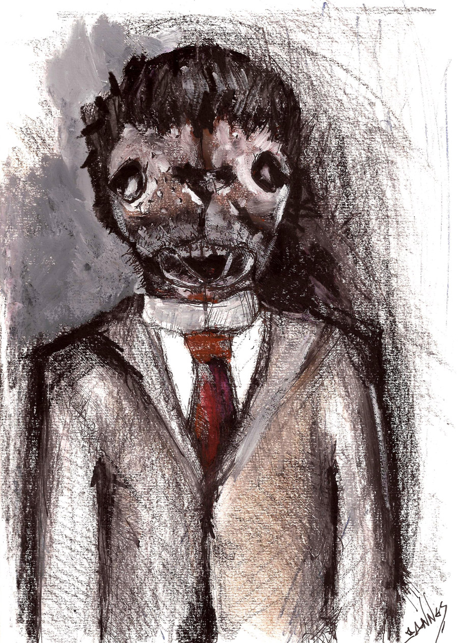 Office assistant with a mutated spider head. Modern times impose nature's law that the strongest must prevail. Human beings change not only internally but also externally their image. His rapacious nature prevails conscience, making inevitable the expulsion of the beast.