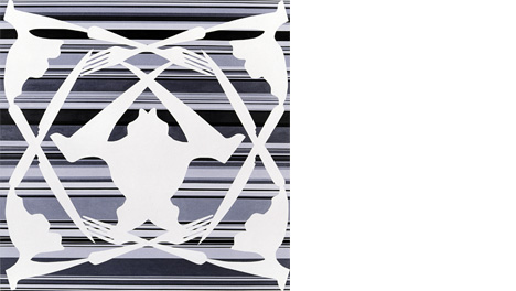 Projected and computer-manipulated images, sleekly transferred into acrylic paint, lie at the basis of these psychedelic concoctions. They were at first taken out from contemporary life, lifted from glossy magazines or the Internet. Often they are still recognizable - figures, forks and knifes - sometimes they have been fragmented and rearranged into repetitive patterns. The resulting canvases capture the mood, the energy and the psyche of the bright side of our contemporary lives, without pretense, without regrets.