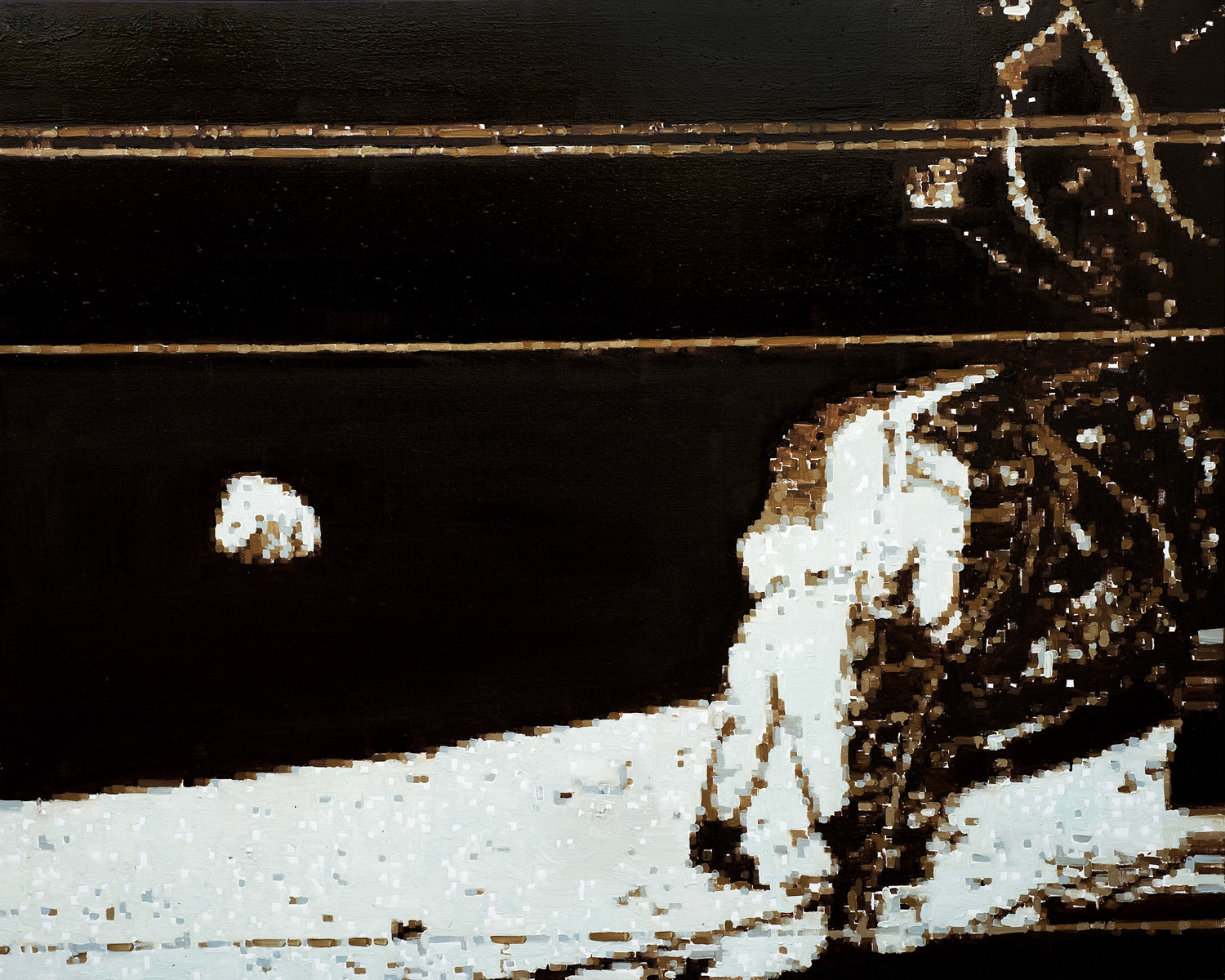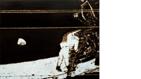 "Angelos Spartalis is among the few artists who continue to defend the tattered flag of the avant garde, the value of the images that resist the vulgarity of television. The painting serries "From the Earth to the Moon" includes paintings influenced by the rock years of the 70's. Through heavy bitumen colors, earthy tones and nervous brushstrokes Spartalis investigates the genealogy of the images that literally and metaphorically brought us here: from the Earth [land] (Canaan, hortus conclusus, Promised Land) to the Moon (Lunar landscape, lunacy, the metaphor of Armageddon). And here lies the epilogue of the efforts of the painter. The simple yet momentous fact that Angelos Spartalis -awarded filmmaker and mixed media artist- loves and still believes in painting. As long as the painting does not confine itself in decorative and emotional adjustments but takes a stand on the issues of the era; to propose aesthetics as a revolution."