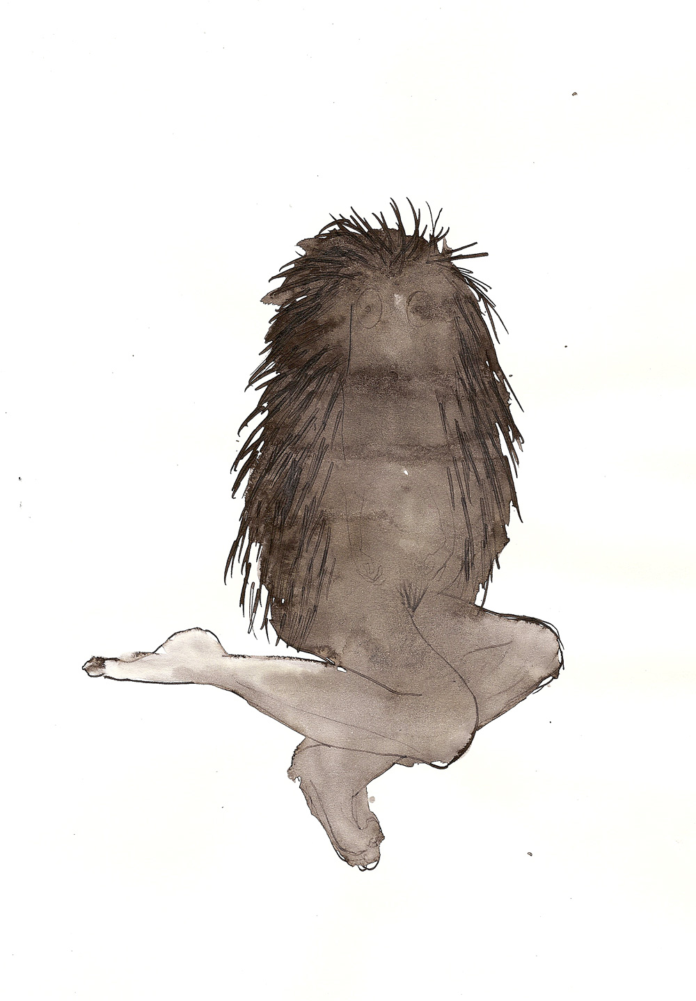 A softer side of the feminine sexuality is presented in the work “Without title”, where a woman-hedgehog carefully stares at us, trying to decide if it’s safe for her to take away her defensive thorns. Nevertheless, her face and intentions are dark, leaving us to wonder if we are safe.