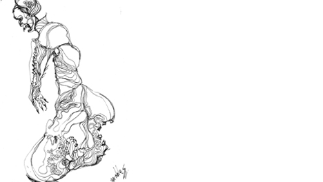Woman wearing a dress that shows its teeth. Being worn from the dress. Being under its control. Fashion covers up our true self projecting a false image.